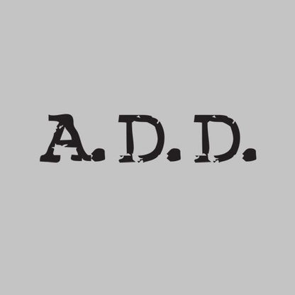 The design features the acronym "A.D.D" which stands for Attention Deficit Disorder, but with a playful twist. It's a lighthearted and self-aware way to celebrate the ups and downs of having a wandering mind and a tendency to get easily distracted.